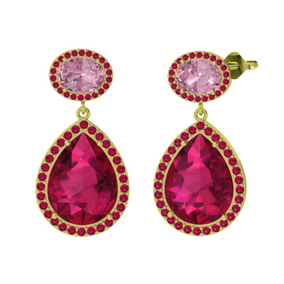 Rodolit garnet ve pembe kuvars 8 ayar altın küpe