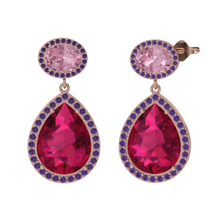 Rodolit garnet, pembe kuvars ve ametist 14 ayar rose altın küpe