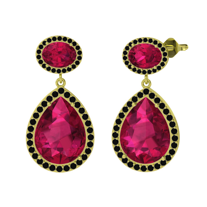 Rodolit garnet ve siyah zirkon 925 ayar altın kaplama gümüş küpe