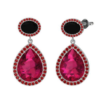 Rodolit garnet, siyah zirkon ve garnet 14 ayar beyaz altın küpe