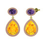 Sitrin, ametist ve pembe kuvars 8 ayar altın küpe
