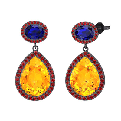 Sitrin, lab safir ve garnet 925 ayar siyah rodyum kaplama gümüş küpe