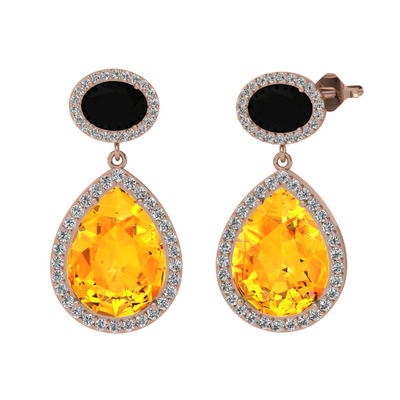 Sitrin, siyah zirkon ve beyaz zirkon 14 ayar rose altın küpe