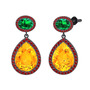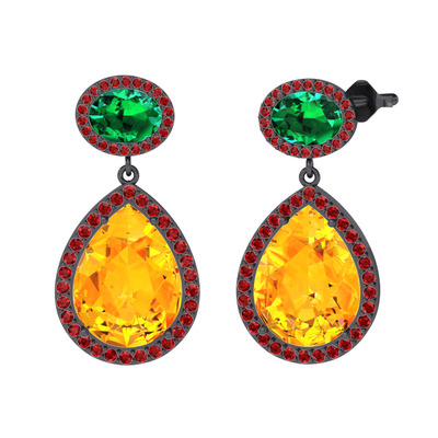 Sitrin, yeşil kuvars ve garnet 925 ayar siyah rodyum kaplama gümüş küpe