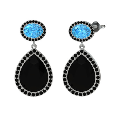 Siyah zirkon ve akuamarin 14 ayar beyaz altın küpe