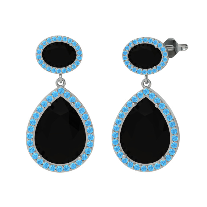 Siyah zirkon ve akuamarin 18 ayar beyaz altın küpe