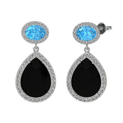 Siyah zirkon, akuamarin ve beyaz zirkon 18 ayar beyaz altın küpe