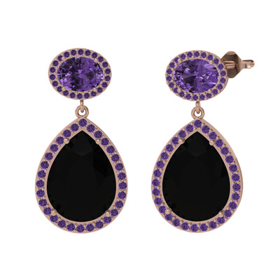 Siyah zirkon ve ametist 14 ayar rose altın küpe