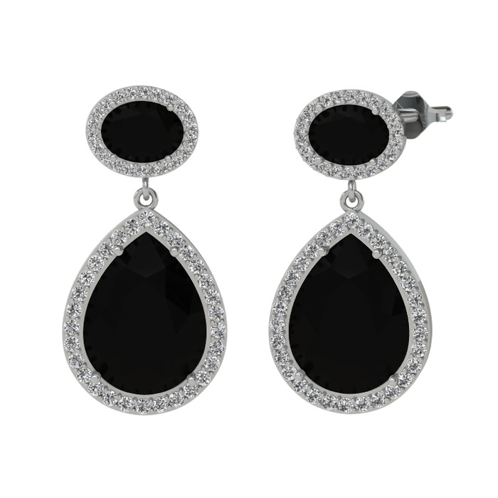 Siyah zirkon ve beyaz zirkon 18 ayar beyaz altın küpe