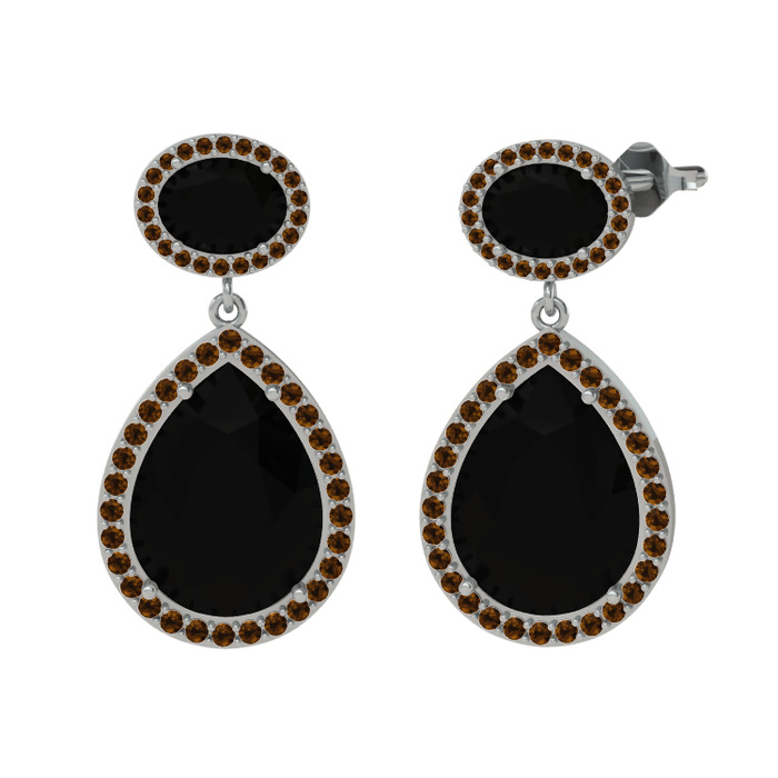 Siyah zirkon ve dumanlı kuvars 925 ayar gümüş küpe