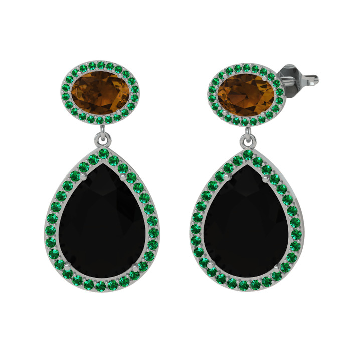 Siyah zirkon, dumanlı kuvars ve yeşil kuvars 18 ayar beyaz altın küpe