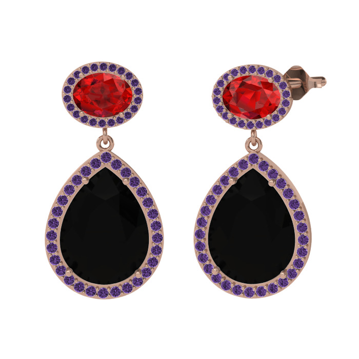Siyah zirkon, garnet ve ametist 14 ayar rose altın küpe