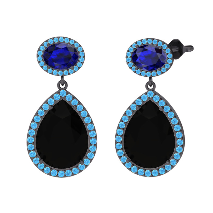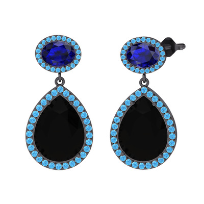 Siyah zirkon, lab safir ve akuamarin 925 ayar siyah rodyum kaplama gümüş küpe