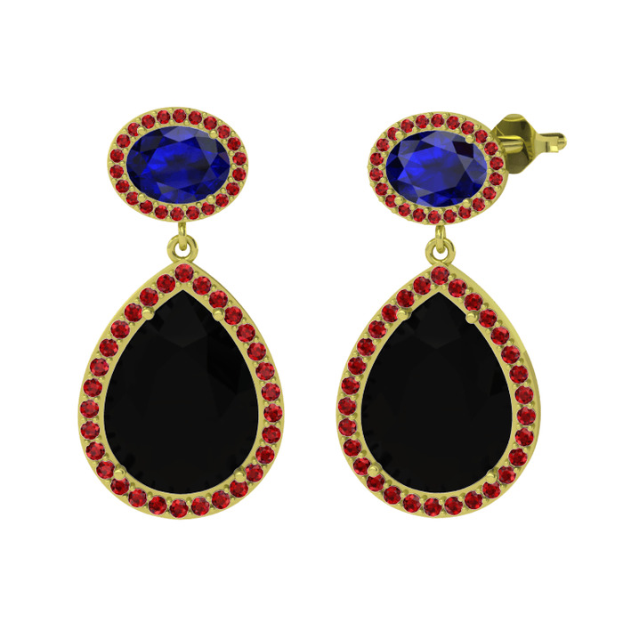 Siyah zirkon, lab safir ve garnet 14 ayar altın küpe