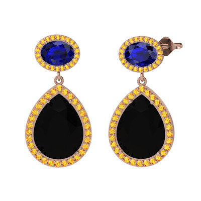 Siyah zirkon, lab safir ve sitrin 18 ayar rose altın küpe