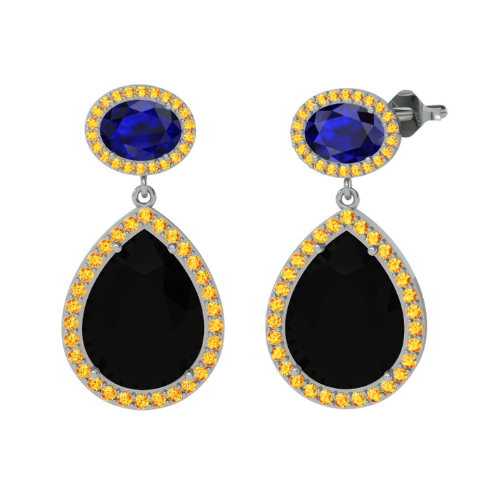 Siyah zirkon, lab safir ve sitrin 925 ayar gümüş küpe