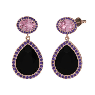 Siyah zirkon, pembe kuvars ve ametist 18 ayar rose altın küpe