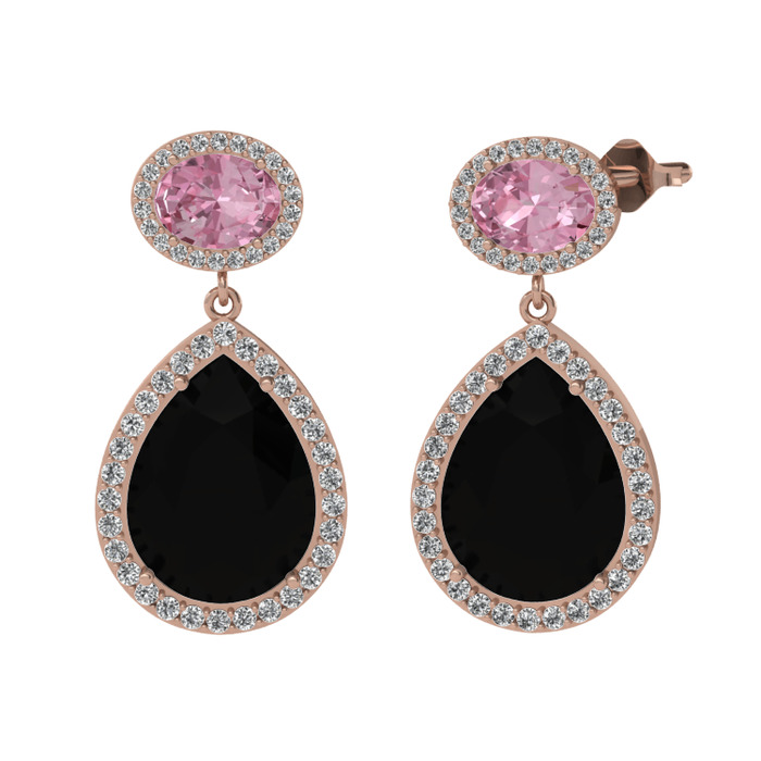 Siyah zirkon, pembe kuvars ve beyaz zirkon 8 ayar rose altın küpe