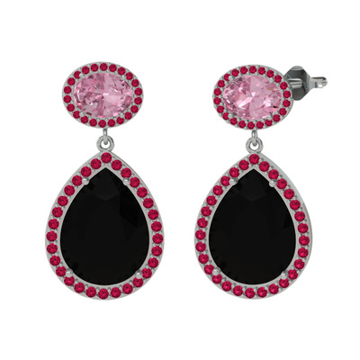 Siyah zirkon, pembe kuvars ve rodolit garnet 14 ayar beyaz altın küpe