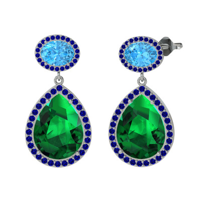 Yeşil kuvars, akuamarin ve lab safir 18 ayar beyaz altın küpe
