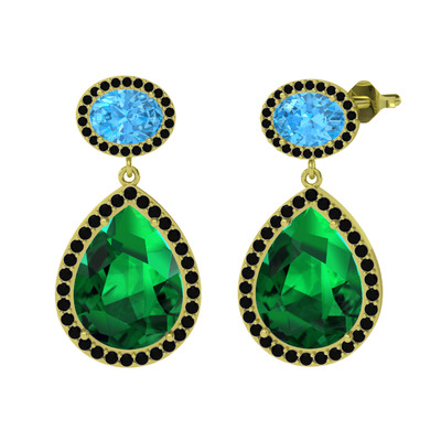 Yeşil kuvars, akuamarin ve siyah zirkon 925 ayar altın kaplama gümüş küpe