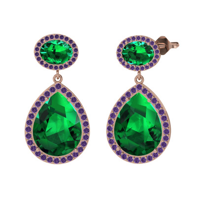 Yeşil kuvars ve ametist 18 ayar rose altın küpe