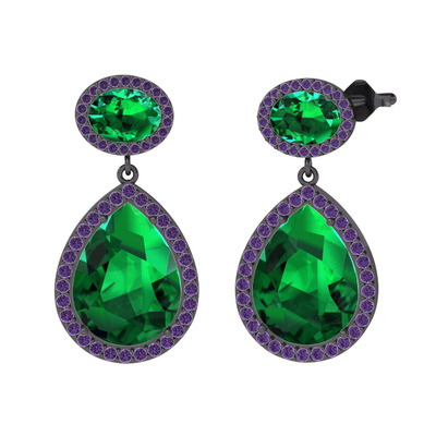 Yeşil kuvars ve ametist 925 ayar siyah rodyum kaplama gümüş küpe
