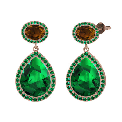 Yeşil kuvars ve dumanlı kuvars 14 ayar rose altın küpe