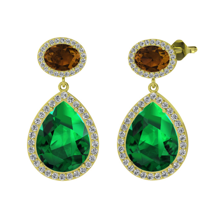 Yeşil kuvars, dumanlı kuvars ve beyaz zirkon 925 ayar altın kaplama gümüş küpe