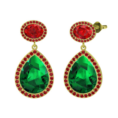Yeşil kuvars ve garnet 8 ayar altın küpe