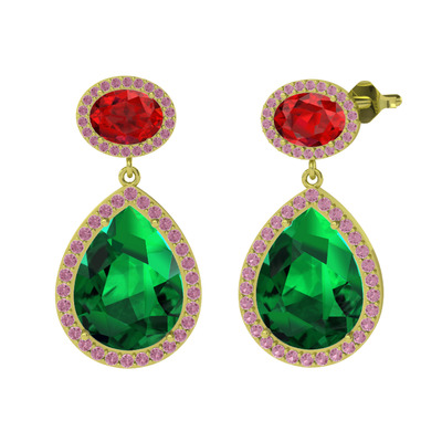 Yeşil kuvars, garnet ve pembe kuvars 8 ayar altın küpe