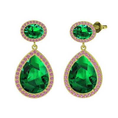 Yeşil kuvars ve pembe kuvars 8 ayar altın küpe