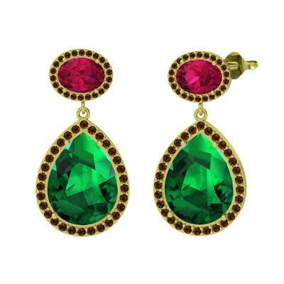 Yeşil kuvars, rodolit garnet ve dumanlı kuvars 18 ayar altın küpe
