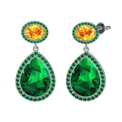 Yeşil kuvars ve sitrin 18 ayar beyaz altın küpe
