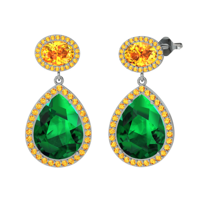 Yeşil kuvars ve sitrin 8 ayar beyaz altın küpe