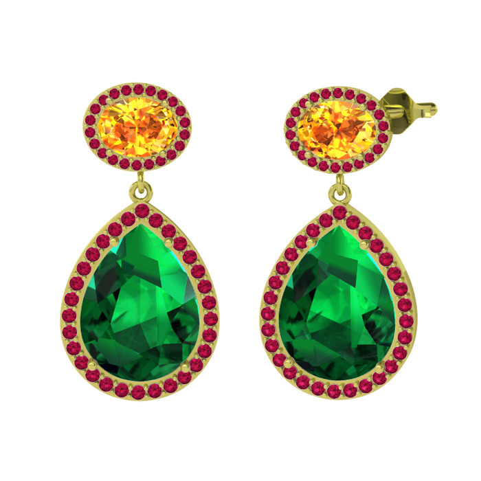 Yeşil kuvars, sitrin ve rodolit garnet 8 ayar altın küpe