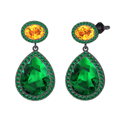 Yeşil kuvars ve sitrin 925 ayar siyah rodyum kaplama gümüş küpe
