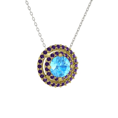 Akuamarin ve ametist 14 ayar altın kolye (40 cm beyaz altın rolo zincir)