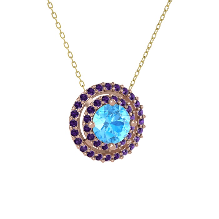 Akuamarin ve ametist 18 ayar rose altın kolye (40 cm altın rolo zincir)