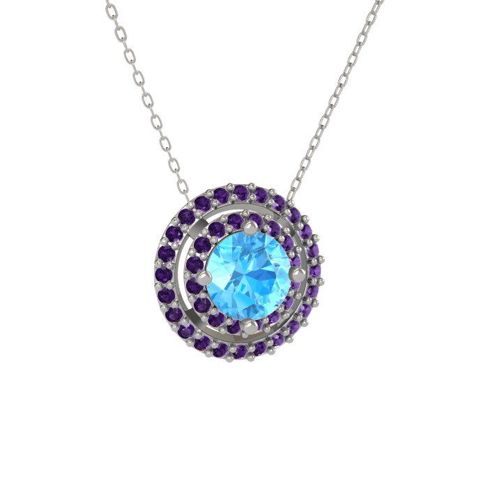 Akuamarin ve ametist 8 ayar beyaz altın kolye (40 cm beyaz altın rolo zincir)