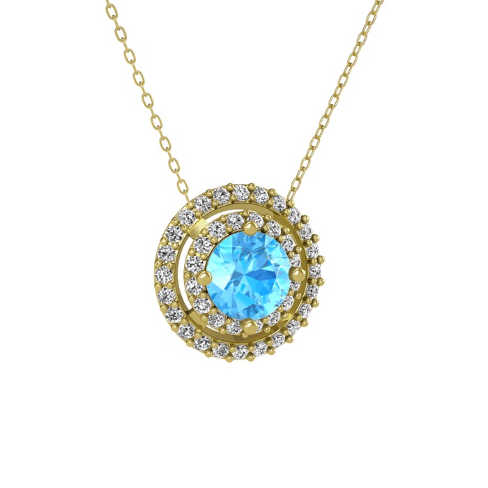 Akuamarin ve beyaz zirkon 8 ayar altın kolye (40 cm altın rolo zincir)