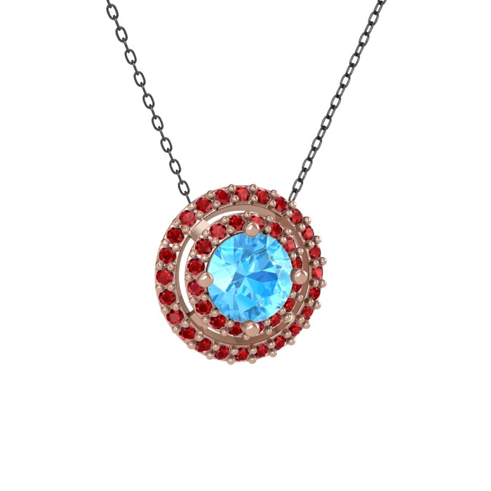 Akuamarin ve garnet 14 ayar rose altın kolye (40 cm gümüş rolo zincir)