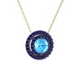 Akuamarin ve lab safir 925 ayar siyah rodyum kaplama gümüş kolye (40 cm altın rolo zincir)
