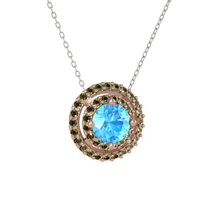 Akuamarin ve peridot 8 ayar rose altın kolye (40 cm beyaz altın rolo zincir)