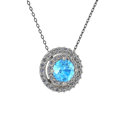 Akuamarin ve pırlanta 8 ayar beyaz altın kolye (0.351 karat, 40 cm gümüş rolo zincir)