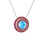 Akuamarin ve rodolit garnet 925 ayar rose altın kaplama gümüş kolye (40 cm beyaz altın rolo zincir)