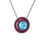 Akuamarin ve rodolit garnet 925 ayar siyah rodyum kaplama gümüş kolye (40 cm gümüş rolo zincir)