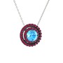 Akuamarin ve rodolit garnet 925 ayar siyah rodyum kaplama gümüş kolye (40 cm gümüş rolo zincir)