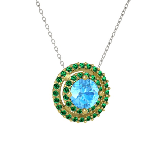 Akuamarin ve yeşil kuvars 8 ayar altın kolye (40 cm gümüş rolo zincir)