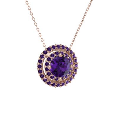 Ametist 14 ayar rose altın kolye (40 cm rose altın rolo zincir)